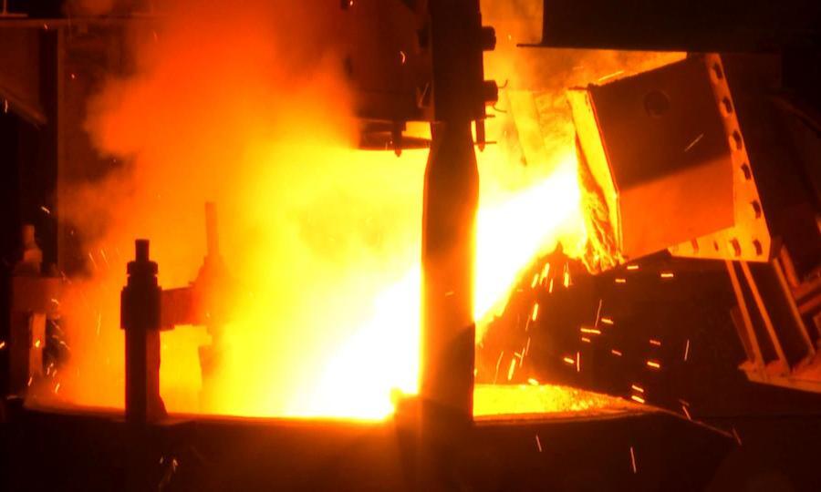 Новая 12-тонная печь готова к сливу металла. Буквально через пару минут из жёлоба потечёт расплавленная сталь. Её температура - почти 1600 градусов. Передать этот ослепительный процесс камера не в силах. Горячий металл заливают в специальный ковш. А дальше крановщик переносит его на сверку температуры и готовится к заливке в формы. Выплавка длилась не больше четырёх часов. Благодаря новому оборудованию скорость увеличилась в разы.