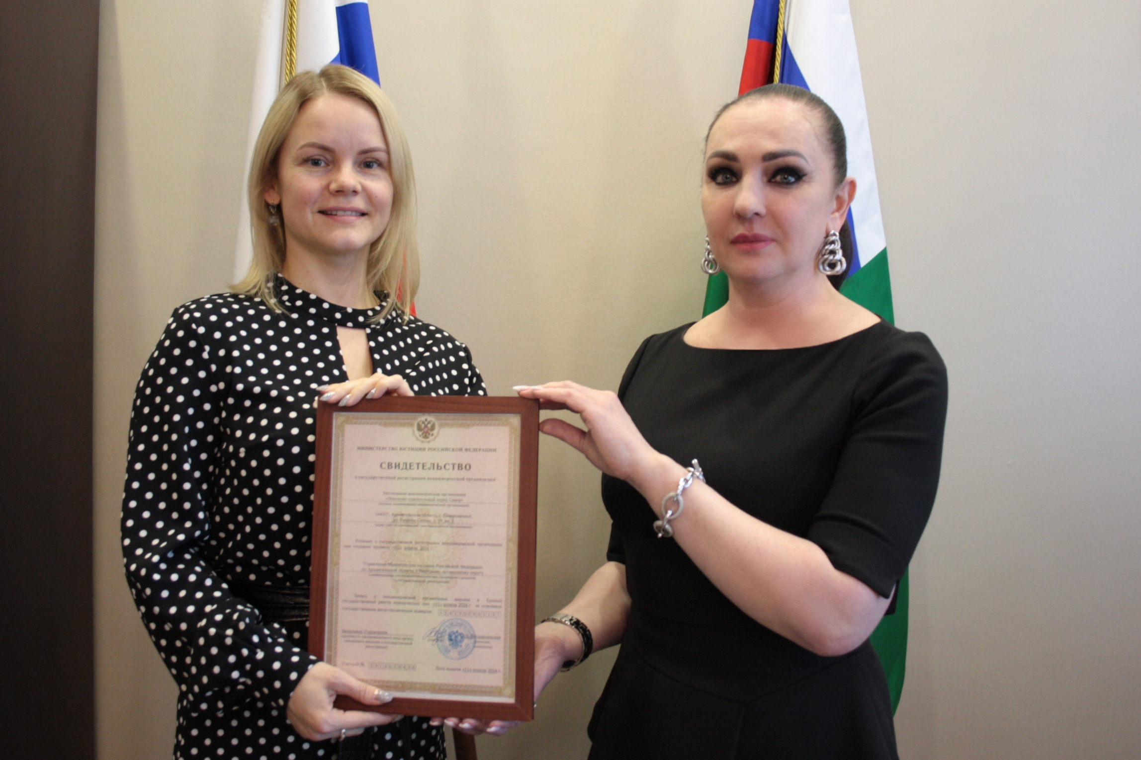 15 апреля начальник Управления Минюста России по Архангельской области и Ненецкому автономному округу Оксана Воскресенская в торжественной обстановке вручила руководителю поисково-спасательного отряда «Север» свидетельство о государственной регистрации некоммерческой организации.