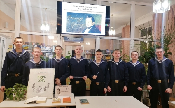 Комедии А.С. Грибоедова «Горе от ума» и 230-летию со дня рождения автора была посвящена встреча первокурсников Котласского филиала ГУМРФ имени адмирала С.О. Макарова в Литературной гостиной. Комедия «Горе от ума» давно служит неизменным украшением русской сцены, является школой актерского мастерства. Участники встречи: Брагин Михаил (11-СВ), Фатеев Руслан (11-ВП), Тимофеев Дмитрий (11-ЭР), Кирьянов Матвей (11-СВ), Пахомов Семен (11-СВ) и Никитин Илья (11-ЭР) попробовали себя в роли актеров и разыграли несколько сцен из пьесы.