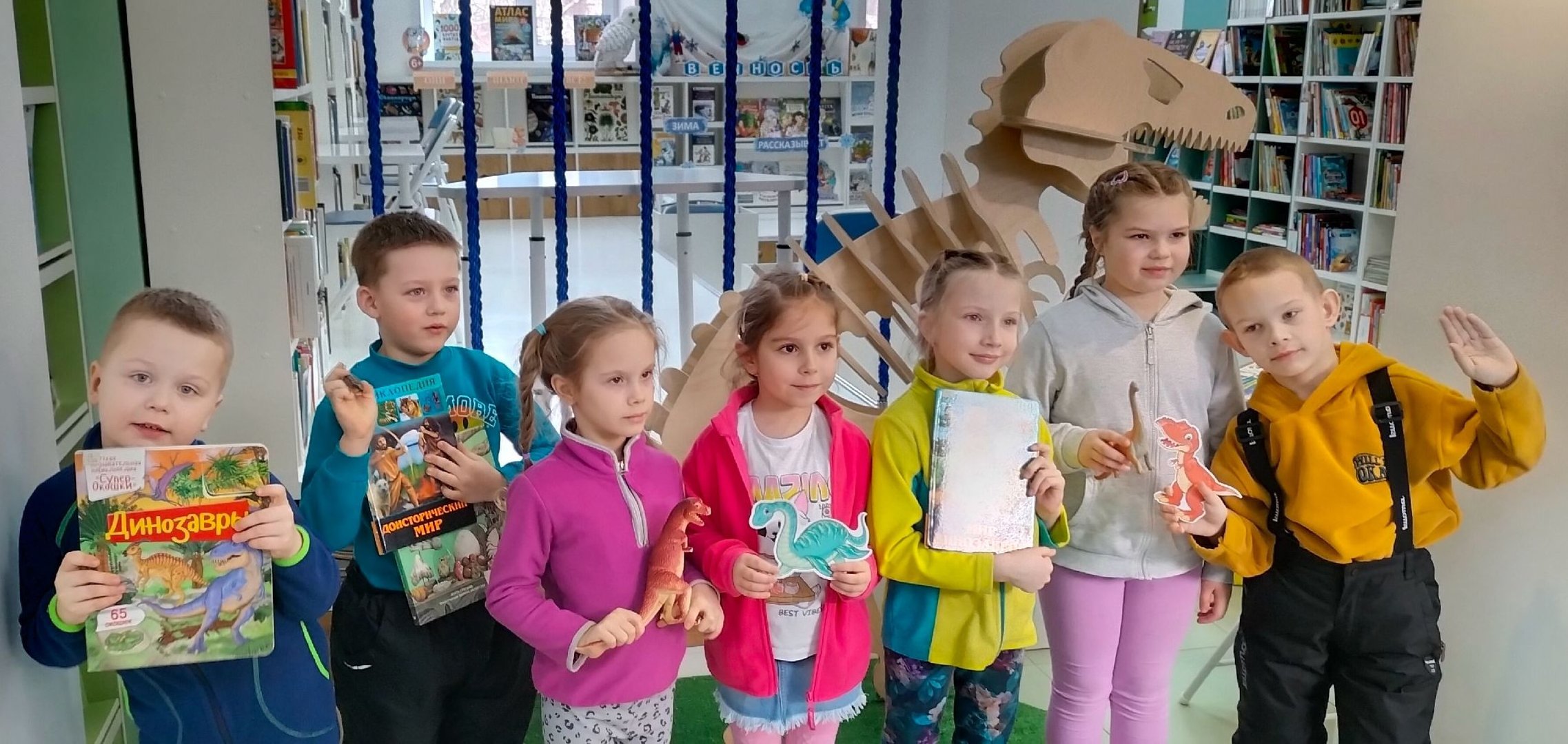 В конце мероприятия ребята фотографировались и с удовольствием знакомились с книжной выставкой, ведь книги о динозаврах – одни из самых любимых у наших маленьких читателей.