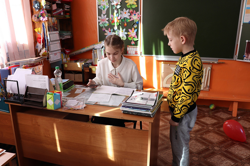 Как приятно было увидеть, что в кабинетах шла настоящая работа. Младшим классам особенно понравились молодые учителя. Ребята с удовольствием отвечали на вопросы старшеклассников, буквально вжившихся в роль педагогов.