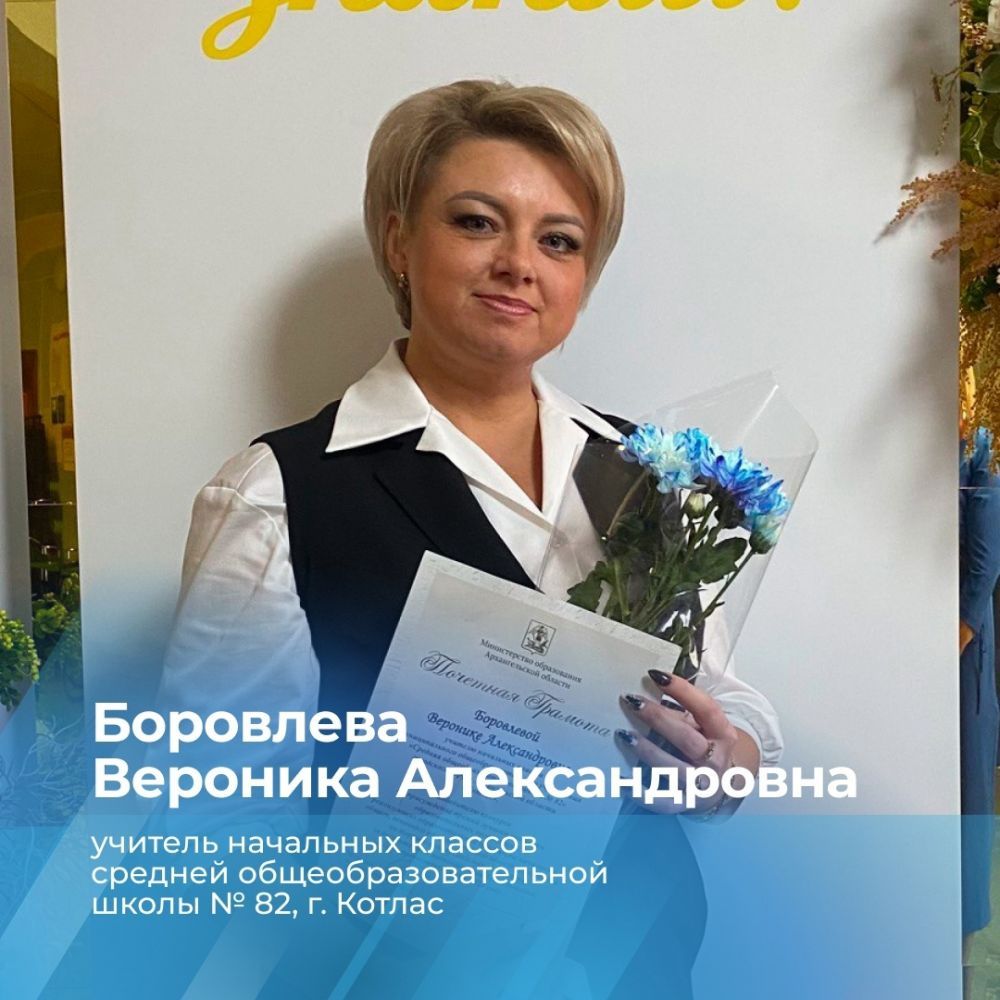 Среди них - Боровлева Вероника Александровна, учительница начальных классов школы № 82 г. Котласа.