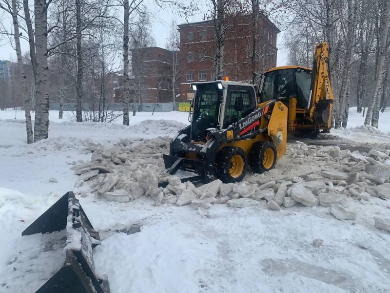 В Архангельске сохраняется мягкая погода, что позволяет продолжать работу по освобождению прогулочных территорий от снежного наката и льда.