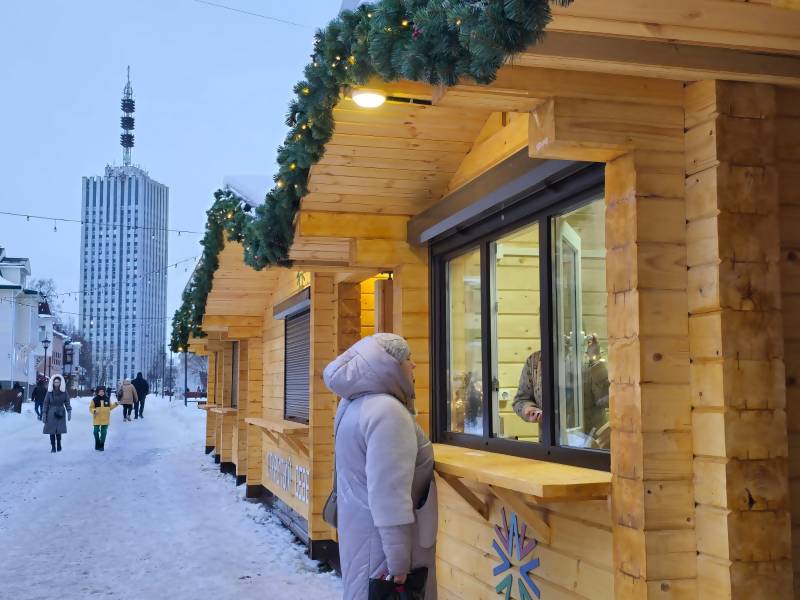 Прогулочная улица готова к новогодним праздникам, а в рамках развития Архангельска как туристского центра здесь разместили стилизованные павильоны.