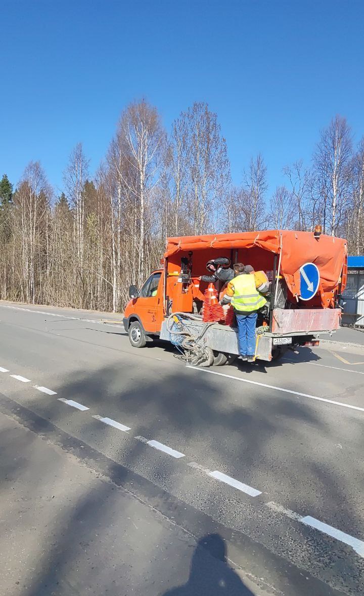 С 22 мая в г.Новодвинске ведутся работы по обновлению дорожной разметки силами АО «Мезенское дорожное управление».