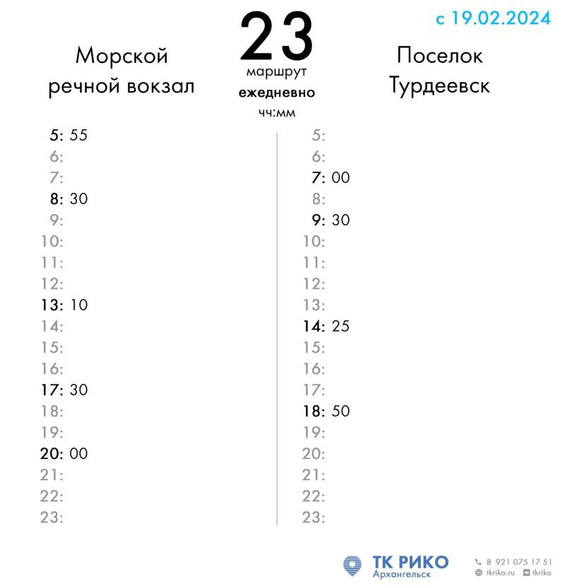 Данный маршрут связывает МРВ и посёлок Турдеевск. С 19 февраля меняется время отправления из посёлка Турдеевск с 18.55 на 18.50 - по просьбе жителей, осуществляющих пересадку на другой автобус.