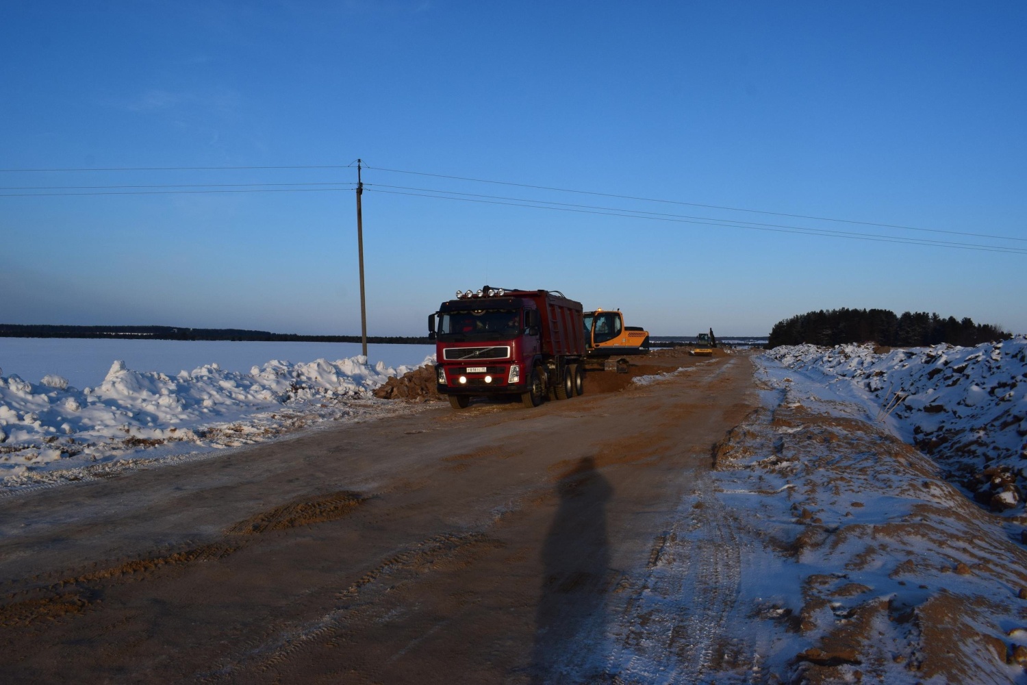 Подрядчик выполняет отсыпку тела насыпи, под которой обустраивается система водопропускных труб. Это позволит в весеннее время исключить затопление автодороги. Вода будет проходить под проезжей частью, не причиняя вреда и не размывая дорожное полотно.
