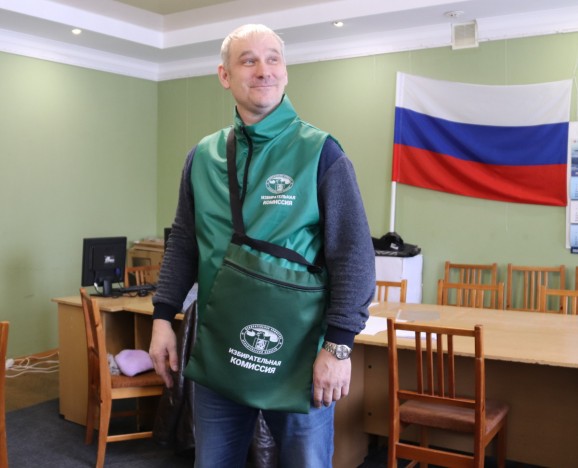 - Сегодня пришли жилеты и сумки, значки-эмблемы президентских выборов для всех членов избирательных комиссий. Жилеты размером 52-54 и 54-56 будет удобно надевать на верхнюю одежду и мужчинам, и женщинам. Ещё ожидаем футляры под бейджи и планшеты для записей, - пояснила председатель территориальной избирательной комиссии № 2 Елена Касаковская.