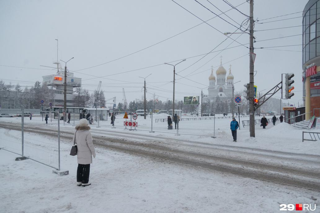 На изменения потратят до 11,8 миллионов рублей С декабря площадь перекрыта Фото: Иван Митюшёв К 2025 году в Архангельске собираются реконструировать площадь Профсоюзов.