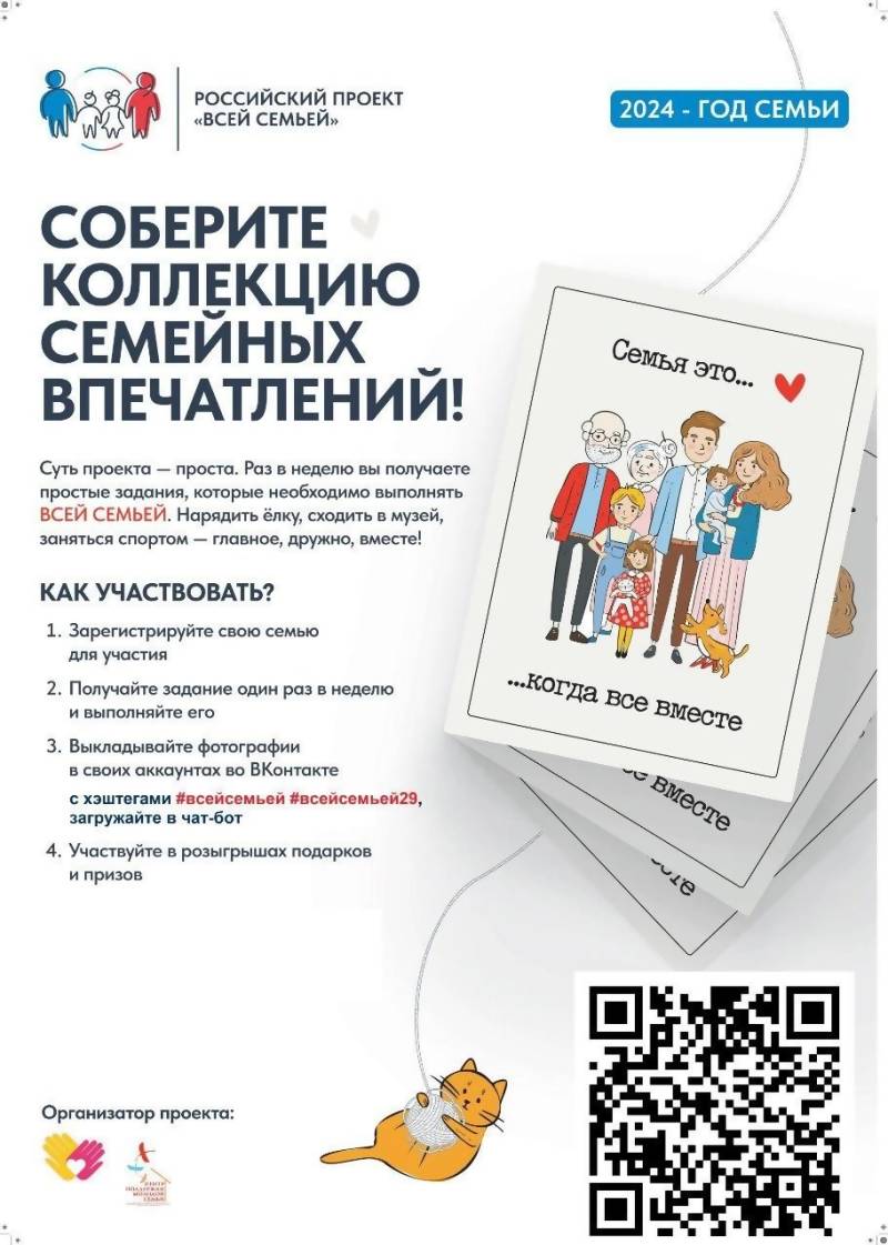 Выкладываем на своей странице с хештегом #всейсемьей, #всейсемьей29, указываем, что Президентом России 2024 год объявлен Годом семьи.
