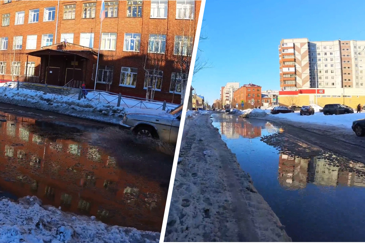 Жители Архангельска уже две недели жалуются на «потоп» рядом со школой № 52. По словам местных, вода на улице Маяковского появляется регулярно, но устранять проблему никто не спешит.