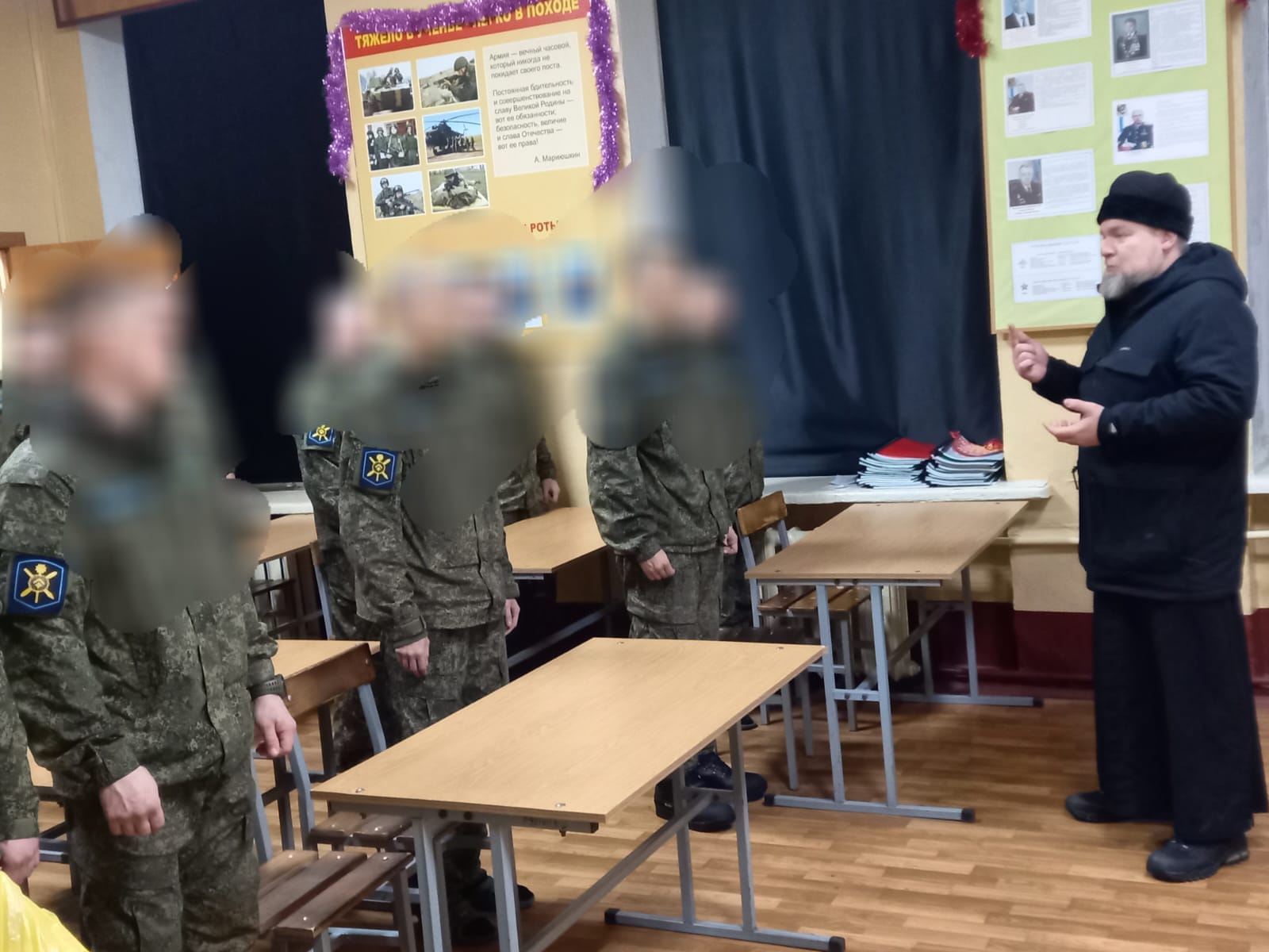 Клирик традиционно посещает подразделения полка в праздники и беседует с военнослужащими.
