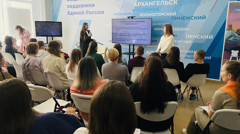 Организаторами мероприятия выступили Министерство здравоохранения Архангельской области и Региональный центр поддержки молодой семьи.Участникам рассказали о показателях состояния беременных женщин, особенностях грудного вскармливания, наблюдении за малышом в течение первого года жизни, дородовой гимнастике и профилактике выгорания.