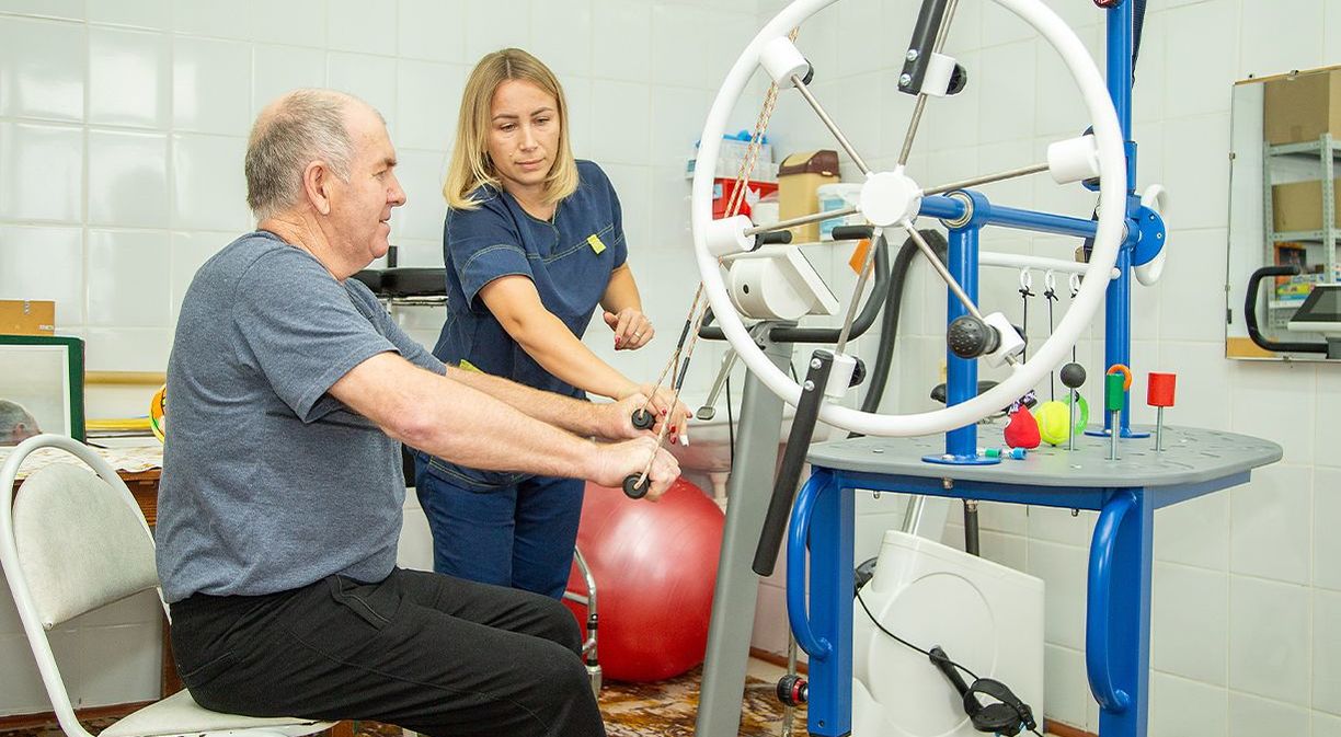 Житель Вилегодского округа Леонид Ефимович попал в стационар горбольницы с серьёзным диагнозом. Курс лечения и реабилитации составил 10 дней. В план лечения были включены занятия, в том числе – на новом тренажере «Капитан», который совсем недавно появился в отделении, в кабинете ЛФК.